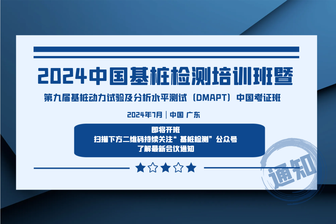 2024中國基樁檢測培訓班暨第九屆基樁動力試驗及分析水平測試(DMAPT)中國考證班將在花城廣州7月開班,考試回歸線下,最新消息請持續(xù)關注“基樁檢測微信公眾號”獲取最新會議信息。